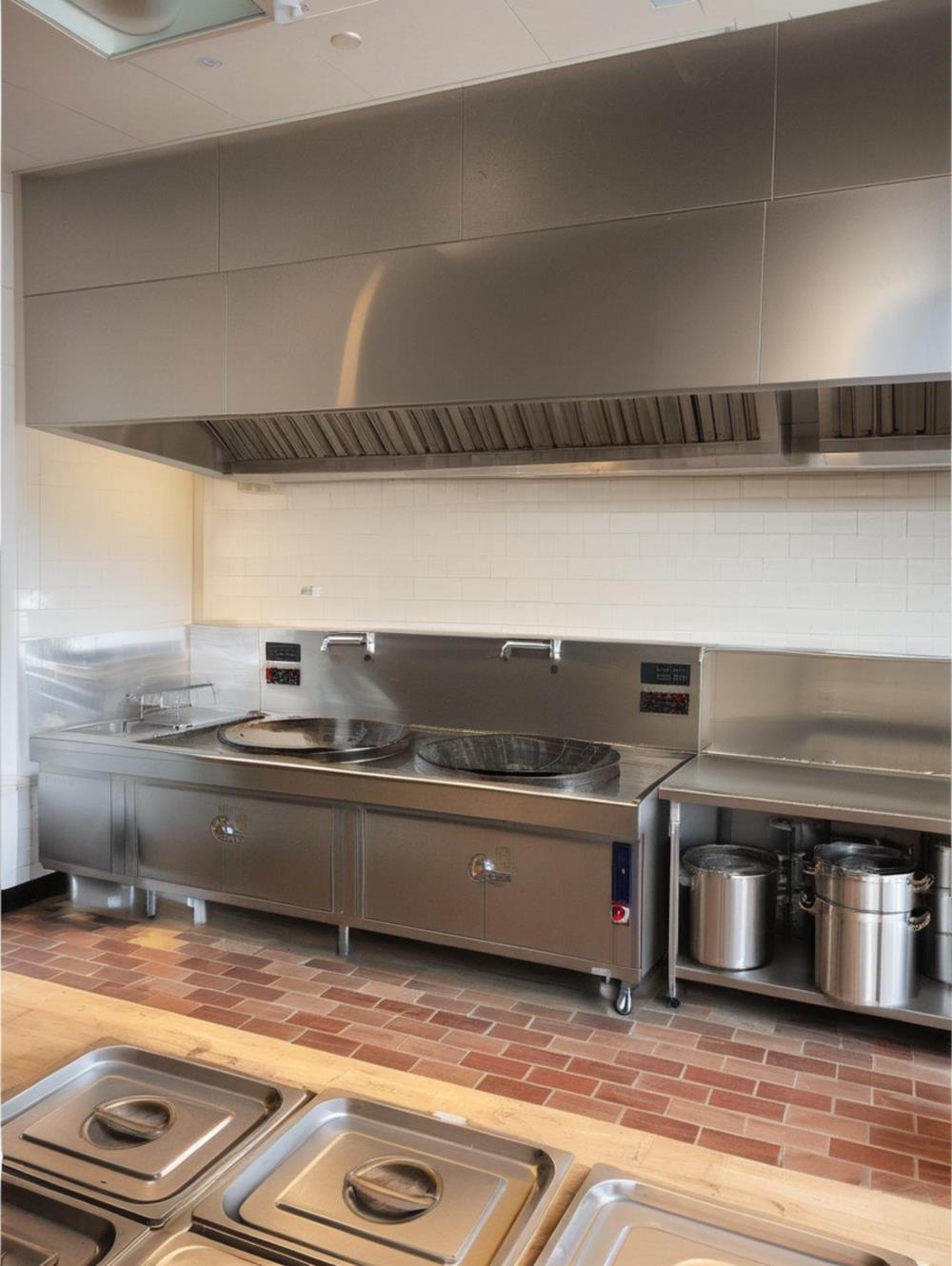 1.設(shè)備放置:按照功能區(qū)域合理布局設(shè)備,如儲(chǔ)存設(shè)備集中于后場(chǎng),烹飪?cè)O(shè)備置于熱加工區(qū),清洗*設(shè)備位于洗消區(qū),保障工作路徑便捷,避免交叉污染。同時(shí),考慮設(shè)備的散熱、通風(fēng)、防火等因素,保障廚房*。