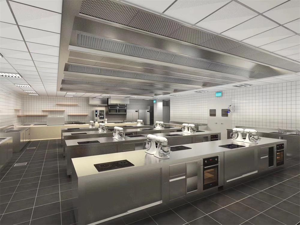 2.設備布局:遵循工作流程,將烹飪設備、備餐設備、清洗設備、儲藏設備等合理分布,形成流暢的工作動線,減少人員移動距離,提高工作效率。例如,烹飪設備與調料架相鄰,洗碗機與餐具*柜相鄰,食材儲存區(qū)靠近廚房入口便于食材補給,同時考慮設備布局有利于教學觀摩與互動。